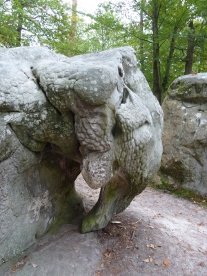 Dans le massif de la forêt de Fontainebleau, à proximité de Barbizon, un très beau spécimen du Bestiaire de la Forêt, cet éléphant est un véritable chef d'œuvre de la sculpture géologique.