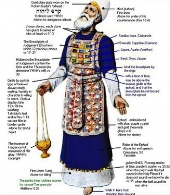 On attacha le pectoral par ses anneaux aux anneaux de l’éphod avec un ruban de pourpre violette, afin que le pectoral fût au-dessus de la ceinture de l’éphod ; et le pectoral ne pouvait se séparer de l’éphod, comme Yahweh l’a ordonné à Moïse.