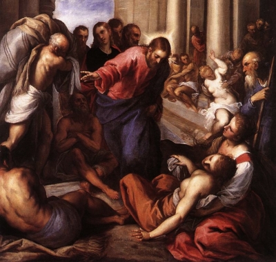 ![]() | Jean 5 - guérisons (illustr: Palma il Giovane)Après cela, il y eut une fête des Juifs, et Jésus monta à Jérusalem. Or, à Jérusalem, près de la porte des brebis, il y a une piscine qui s’appelle en hébreu Béthesda, et qui a cinq portiques. Sous ces portiques étaient couchés en grand nombre des malades, des aveugles, des boiteux, des paralytiques, qui attendaient le mouvement de l’eau ; car un ange descendait de temps en temps dans la piscine, et agitait l’eau ; et celui qui y descendait le premier après que l’eau avait été agitée était guéri, quelle que fût sa maladie. Là se trouvait un homme malade depuis trente-huit ans. Jésus, l’ayant vu couché, et sachant qu’il était malade depuis longtemps, lui dit : Veux-tu être guéri ? Le malade lui répondit : Seigneur, je n’ai personne pour me jeter dans la piscine quand l’eau est agitée, et, pendant que j’y vais, un autre descend avant moi. Lève-toi, lui dit Jésus, prends ton lit, et marche. Aussitôt cet homme fut guéri ; il prit son lit, et marcha. C’était un jour de sabbat. Les Juifs dirent donc à celui qui avait été guéri : C’est le sabbat ; il ne t’est pas permis d’emporter ton lit. Il leur répondit : Celui qui m’a guéri m’a dit : Prends ton lit, et marche. Ils lui demandèrent : Qui est l’homme qui t’a dit : Prends ton lit, et marche ? Mais celui qui avait été guéri ne savait pas qui c’était ; car Jésus avait disparu de la foule qui était en ce lieu. Depuis, Jésus le trouva dans le temple, et lui dit : Voici, tu as été guéri ; ne pèche plus, de peur qu’il ne t’arrive quelque chose de pire. Cet homme s’en alla, et annonça aux Juifs que c’était Jésus qui l’avait guéri. C’est pourquoi les Juifs poursuivaient Jésus, parce qu’il faisait ces choses le jour du sabbat. Mais Jésus leur répondit : Mon Père agit jusqu’à présent ; moi aussi, j’agis. À cause de cela, les Juifs cherchaient encore plus à le faire mourir, non seulement parce qu’il violait le sabbat, mais parce qu’il appelait Dieu son propre Père, se faisant lui-même égal à Dieu. Jésus reprit donc la parole, et leur dit : En vérité, en vérité, je vous le dis, le Fils ne peut rien faire de lui-même, il ne fait que ce qu’il voit faire au Père ; et tout ce que le Père fait, le Fils aussi le fait pareillement. Car le Père aime le Fils, et lui montre tout ce qu’il fait ; et il lui montrera des œuvres plus grandes que celles-ci, afin que vous soyez dans l’étonnement. Car, comme le Père ressuscite les morts et donne la vie, ainsi le Fils donne la vie à qui il veut. Le Père ne juge personne, mais il a remis tout jugement au Fils, afin que tous honorent le Fils comme ils honorent le Père. Celui qui n’honore pas le Fils n’honore pas le Père qui l’a envoyé. En vérité, en vérité, je vous le dis, celui qui écoute ma parole, et qui croit à celui qui m’a envoyé, a la vie éternelle et ne vient point en jugement, mais il est passé de la mort à la vie. En vérité, en vérité, je vous le dis, l’heure vient, et elle est déjà venue, où les morts entendront la voix du Fils de Dieu ; et ceux qui l’auront entendue vivront. Car, comme le Père a la vie en lui-même, ainsi il a donné au Fils d’avoir la vie en lui-même. Et il lui a donné le pouvoir de juger, parce qu’il est Fils de l’homme. Ne vous étonnez pas de cela ; car l’heure vient où tous ceux qui sont dans les sépulcres entendront sa voix, et en sortiront. Ceux qui auront fait le bien ressusciteront pour la vie, mais ceux qui auront fait le mal ressusciteront pour le jugement. Je ne puis rien faire de moi-même : selon que j’entends, je juge ; et mon jugement est juste, parce que je ne cherche pas ma volonté, mais la volonté de celui qui m’a envoyé. Si c’est moi qui rends témoignage de moi-même, mon témoignage n’est pas vrai. Il y en a un autre qui rend témoignage de moi, et je sais que le témoignage qu’il rend de moi est vrai. Vous avez envoyé vers Jean, et il a rendu témoignage à la vérité. Pour moi ce n’est pas d’un homme que je reçois le témoignage ; mais je dis ceci, afin que vous soyez sauvés. Jean était la lampe qui brûle et qui luit, et vous avez voulu vous réjouir une heure à sa lumière. Moi, j’ai un témoignage plus grand que celui de Jean ; car les œuvres que le Père m’a donné d’accomplir, ces œuvres mêmes que je fais, témoignent de moi que c’est le Père qui m’a envoyé. Et le Père qui m’a envoyé a rendu lui-même témoignage de moi. Vous n’avez jamais entendu sa voix, vous n’avez point vu sa face, et sa parole ne demeure point en vous, parce que vous ne croyez pas à celui qu’il a envoyé. Vous sondez les Écritures, parce que vous pensez avoir en elles la vie éternelle : ce sont elles qui rendent témoignage de moi. Et vous ne voulez pas venir à moi pour avoir la vie ! Je ne tire pas ma gloire des hommes. Mais je sais que vous n’avez point en vous l’amour de Dieu. Je suis venu au nom de mon Père, et vous ne me recevez pas ; si un autre vient en son propre nom, vous le recevrez. Comment pouvez-vous croire, vous qui tirez votre gloire les uns des autres, et qui ne cherchez point la gloire qui vient de Dieu seul ? Ne pensez pas que moi je vous accuserai devant le Père ; celui qui vous accuse, c’est Moïse, en qui vous avez mis votre espérance. Car si vous croyiez Moïse, vous me croiriez aussi, parce qu’il a écrit de moi. Mais si vous ne croyez pas à ses écrits, comment croirez-vous à mes paroles ? Après cela, il y eut une fête des Juifs, et Jésus monta à Jérusalem. Or, à Jérusalem, près de la porte des brebis, il y a une piscine qui s’appelle en hébreu Bé ... |