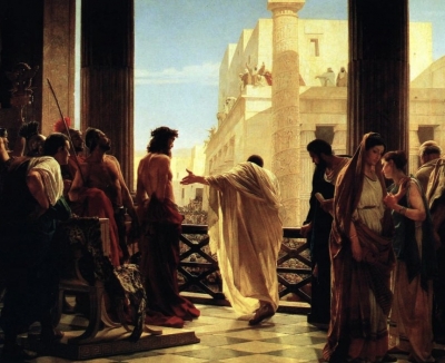 ![]() | Jean 19 - le proces devant PilateAlors Pilate prit Jésus, et le fit battre de verges. Les soldats tressèrent une couronne d’épines qu’ils posèrent sur sa tête, et ils le revêtirent d’un manteau de pourpre ; puis, s’approchant de lui, ils disaient : Salut, roi des Juifs ! Et ils lui donnaient des soufflets. Pilate sortit de nouveau, et dit aux Juifs : Voici, je vous l’amène dehors, afin que vous sachiez que je ne trouve en lui aucun crime. Jésus sortit donc, portant la couronne d’épines et le manteau de pourpre. Et Pilate leur dit : Voici l’homme. Lorsque les principaux sacrificateurs et les huissiers le virent, ils s’écrièrent : Crucifie ! crucifie ! Pilate leur dit : Prenez-le vous-mêmes, et crucifiez-le ; car moi, je ne trouve point de crime en lui. Les Juifs lui répondirent : Nous avons une loi ; et, selon notre loi, il doit mourir, parce qu’il s’est fait Fils de Dieu. Quand Pilate entendit cette parole, sa frayeur augmenta. Il rentra dans le prétoire, et il dit à Jésus : D’où es-tu ? Mais Jésus ne lui donna point de réponse. Pilate lui dit : Est-ce à moi que tu ne parles pas ? Ne sais-tu pas que j’ai le pouvoir de te crucifier, et que j’ai le pouvoir de te relâcher ? Jésus répondit : Tu n’aurais sur moi aucun pouvoir, s’il ne t’avait été donné d’en haut. C’est pourquoi celui qui me livre à toi commet un plus grand péché. Dès ce moment, Pilate cherchait à le relâcher. Mais les Juifs criaient : Si tu le relâches, tu n’es pas ami de César. Quiconque se fait roi se déclare contre César. Pilate, ayant entendu ces paroles, amena Jésus dehors ; et il s’assit sur le tribunal, au lieu appelé le Pavé, et en hébreu Gabbatha. C’était la préparation de la Pâque, et environ la sixième heure. Pilate dit aux Juifs : Voici votre roi. Mais ils s’écrièrent : Ote, ôte, crucifie-le ! Pilate leur dit : Crucifierai-je votre roi ? Les principaux sacrificateurs répondirent : Nous n’avons de roi que César. Alors il le leur livra pour être crucifié. Ils prirent donc Jésus, et l’emmenèrent. Jésus, portant sa croix, arriva au lieu du crâne, qui se nomme en hébreu Golgotha. C’est là qu’il fut crucifié, et deux autres avec lui, un de chaque côté, et Jésus au milieu. Pilate fit une inscription, qu’il plaça sur la croix, et qui était ainsi conçue : Jésus de Nazareth, roi des Juifs. Beaucoup de Juifs lurent cette inscription, parce que le lieu où Jésus fut crucifié était près de la ville : elle était en hébreu, en grec et en latin. Les principaux sacrificateurs des Juifs dirent à Pilate : N’écris pas : Roi des Juifs. Mais écris qu’il a dit : Je suis roi des Juifs. Pilate répondit : Ce que j’ai écrit, je l’ai écrit. Les soldats, après avoir crucifié Jésus, prirent ses vêtements, et ils en firent quatre parts, une part pour chaque soldat. Ils prirent aussi sa tunique, qui était sans couture, d’un seul tissu depuis le haut jusqu’en bas. Et ils dirent entre eux : Ne la déchirons pas, mais tirons au sort à qui elle sera. Cela arriva afin que s’accomplît cette parole de l’Écriture : Ils se sont partagé mes vêtements, et ils ont tiré au sort ma tunique. Voilà ce que firent les soldats. Près de la croix de Jésus se tenaient sa mère et la sœur de sa mère, Marie, femme de Clopas, et Marie de Magdala. Jésus, voyant sa mère, et auprès d’elle le disciple qu’il aimait, dit à sa mère : Femme, voilà ton fils. Puis il dit au disciple : Voilà ta mère. Et, dès ce moment, le disciple la prit chez lui. Après cela, Jésus, qui savait que tout était déjà consommé, dit, afin que l’Écriture fût accomplie : J’ai soif. Il y avait là un vase plein de vinaigre. Les soldats en remplirent une éponge, et, l’ayant fixée à une branche d’hysope, ils l’approchèrent de sa bouche. Quand Jésus eut pris le vinaigre, il dit : Tout est accompli. Et, baissant la tête, il rendit l’esprit. Dans la crainte que les corps ne restassent sur la croix pendant le sabbat, car c’était la préparation, et ce jour de sabbat était un grand jour, les Juifs demandèrent à Pilate qu’on rompît les jambes aux crucifiés, et qu’on les enlevât. Les soldats vinrent donc, et ils rompirent les jambes au premier, puis à l’autre qui avait été crucifié avec lui. S’étant approchés de Jésus, et le voyant déjà mort, ils ne lui rompirent pas les jambes ; mais un des soldats lui perça le côté avec une lance, et aussitôt il sortit du sang et de l’eau. Celui qui l’a vu en a rendu témoignage, et son témoignage est vrai ; et il sait qu’il dit vrai, afin que vous croyiez aussi. Ces choses sont arrivées, afin que l’Écriture fût accomplie : Aucun de ses os ne sera brisé. Et ailleurs l’Écriture dit encore : Ils verront celui qu’ils ont percé. Après cela, Joseph d’Arimathée, qui était disciple de Jésus, mais en secret par crainte des Juifs, demanda à Pilate la permission de prendre le corps de Jésus. Et Pilate le permit. Il vint donc, et prit le corps de Jésus. Nicodème, qui auparavant était allé de nuit vers Jésus, vint aussi, apportant un mélange d’environ cent livres de myrrhe et d’aloès. Ils prirent donc le corps de Jésus, et l’enveloppèrent de bandes, avec les aromates, comme c’est la coutume d’ensevelir chez les Juifs. Or, il y avait un jardin dans le lieu où Jésus avait été crucifié, et dans le jardin un sépulcre neuf, où personne encore n’avait été mis. Ce fut là qu’ils déposèrent Jésus, à cause de la préparation des Juifs, parce que le sépulcre était proche. Alors Pilate prit Jésus, et le fit battre de verges. Les soldats tressèrent une couronne d’épines qu’ils posèrent sur sa tête, et ils le revêtirent d’un manteau de pourpre ; pui ... |