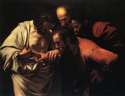 ![]() | Jean 20 - Thomas incrédule (illustr: Le Caravage)Le premier jour de la semaine, Marie de Magdala se rendit au sépulcre dès le matin, comme il faisait encore obscur ; et elle vit que la pierre était ôtée du sépulcre. Elle courut vers Simon Pierre et vers l’autre disciple que Jésus aimait, et leur dit : Ils ont enlevé du sépulcre le Seigneur, et nous ne savons où ils l’ont mis. Pierre et l’autre disciple sortirent, et allèrent au sépulcre. Ils couraient tous deux ensemble. Mais l’autre disciple courut plus vite que Pierre, et arriva le premier au sépulcre ; s’étant baissé, il vit les bandes qui étaient à terre, cependant il n’entra pas. Simon Pierre, qui le suivait, arriva et entra dans le sépulcre ; il vit les bandes qui étaient à terre, et le linge qu’on avait mis sur la tête de Jésus, non pas avec les bandes, mais plié dans un lieu à part. Alors l’autre disciple, qui était arrivé le premier au sépulcre, entra aussi ; et il vit, et il crut. Car ils ne comprenaient pas encore que, selon l’Écriture, Jésus devait ressusciter des morts. Et les disciples s’en retournèrent chez eux. Cependant Marie se tenait dehors près du sépulcre, et pleurait. Comme elle pleurait, elle se baissa pour regarder dans le sépulcre ; et elle vit deux anges vêtus de blanc, assis à la place où avait été couché le corps de Jésus, l’un à la tête, l’autre aux pieds. Ils lui dirent : Femme, pourquoi pleures-tu ? Elle leur répondit : Parce qu’ils ont enlevé mon Seigneur, et je ne sais où ils l’ont mis. En disant cela, elle se retourna, et elle vit Jésus debout ; mais elle ne savait pas que c’était Jésus. Jésus lui dit : Femme, pourquoi pleures-tu ? Qui cherches-tu ? Elle, pensant que c’était le jardinier, lui dit : Seigneur, si c’est toi qui l’as emporté, dis-moi où tu l’as mis, et je le prendrai. Jésus lui dit : Marie ! Elle se retourna, et lui dit en hébreu : Rabbouni ! c’est-à-dire, Maître ! Jésus lui dit : Ne me touche pas ; car je ne suis pas encore monté vers mon Père. Mais va trouver mes frères, et dis-leur que je monte vers mon Père et votre Père, vers mon Dieu et votre Dieu. Marie de Magdala alla annoncer aux disciples qu’elle avait vu le Seigneur, et qu’il lui avait dit ces choses. Le soir de ce jour, qui était le premier de la semaine, les portes du lieu où se trouvaient les disciples étant fermées, à cause de la crainte qu’ils avaient des Juifs, Jésus vint, se présenta au milieu d’eux, et leur dit : La paix soit avec vous ! Et quand il eut dit cela, il leur montra ses mains et son côté. Les disciples furent dans la joie en voyant le Seigneur. Jésus leur dit de nouveau : La paix soit avec vous ! Comme le Père m’a envoyé, moi aussi je vous envoie. Après ces paroles, il souffla sur eux, et leur dit : Recevez le Saint-Esprit. Ceux à qui vous pardonnerez les péchés, ils leur seront pardonnés ; et ceux à qui vous les retiendrez, ils leur seront retenus. Thomas, appelé Didyme, l’un des douze, n’était pas avec eux lorsque Jésus vint. Les autres disciples lui dirent donc : Nous avons vu le Seigneur. Mais il leur dit : Si je ne vois dans ses mains la marque des clous, et si je ne mets mon doigt dans la marque des clous, et si je ne mets ma main dans son côté, je ne croirai point. Huit jours après, les disciples de Jésus étaient de nouveau dans la maison, et Thomas se trouvait avec eux. Jésus vint, les portes étant fermées, se présenta au milieu d’eux, et dit : La paix soit avec vous ! Puis il dit à Thomas : Avance ici ton doigt, et regarde mes mains ; avance aussi ta main, et mets-la dans mon côté ; et ne sois pas incrédule, mais crois. Thomas lui répondit : Mon Seigneur et mon Dieu ! Jésus lui dit : Parce que tu m’as vu, tu as cru. Heureux ceux qui n’ont pas vu, et qui ont cru ! Jésus a fait encore, en présence de ses disciples, beaucoup d’autres miracles, qui ne sont pas écrits dans ce livre. Mais ces choses ont été écrites afin que vous croyiez que Jésus est le Christ, le Fils de Dieu, et qu’en croyant vous ayez la vie en son nom. Le premier jour de la semaine, Marie de Magdala se rendit au sépulcre dès le matin, comme il faisait encore obscur ; et elle vit que la pierre était ôtée du sépulcre. Elle courut vers Simon Pier ... |