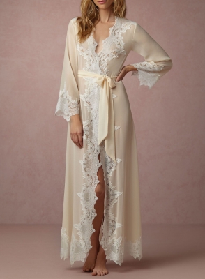 en soie couleur crème et en fines dentelles de calais.