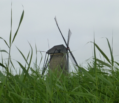 Kinderdijk - moulin derriere les herbes