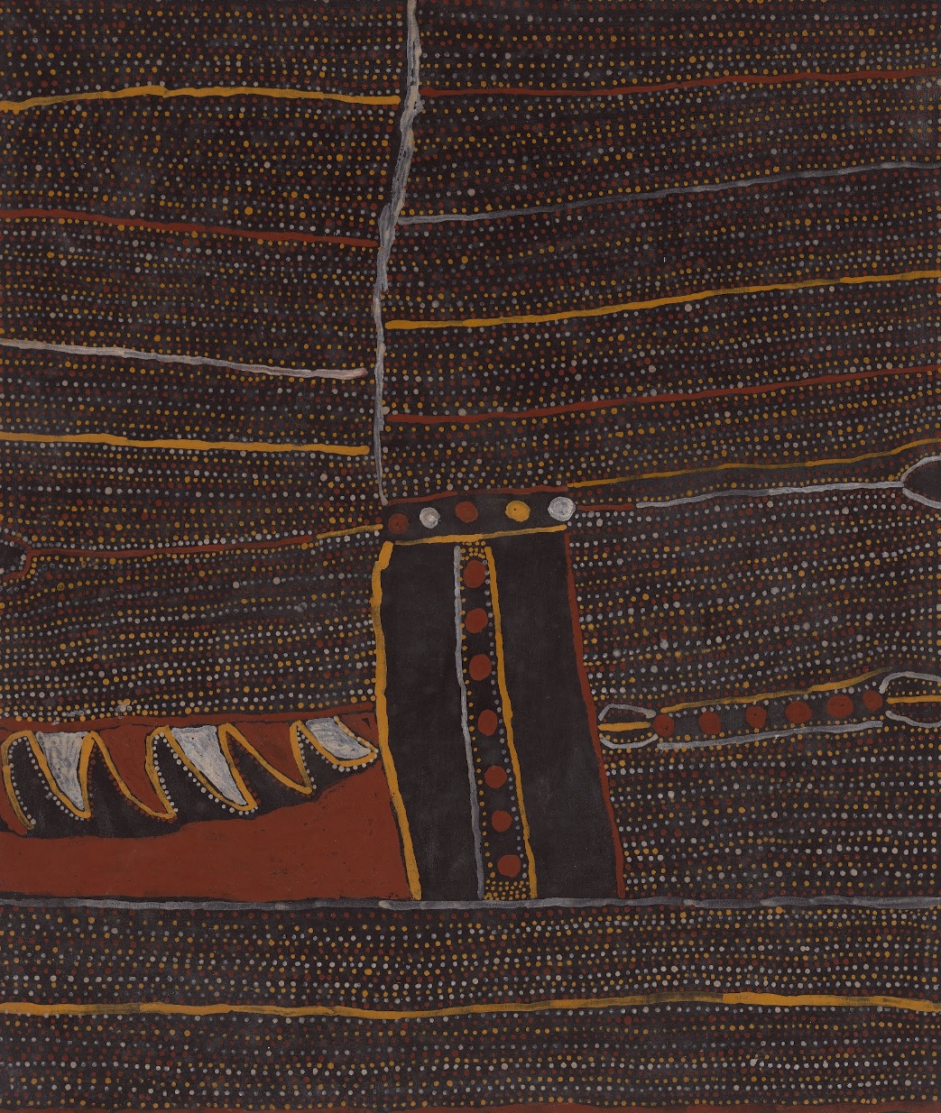 ![]() | National Gallery of Australia, Canberra Crocodile Dreaming C.1979Details BARDKADUBBU | Kunwinjku people ![]() |