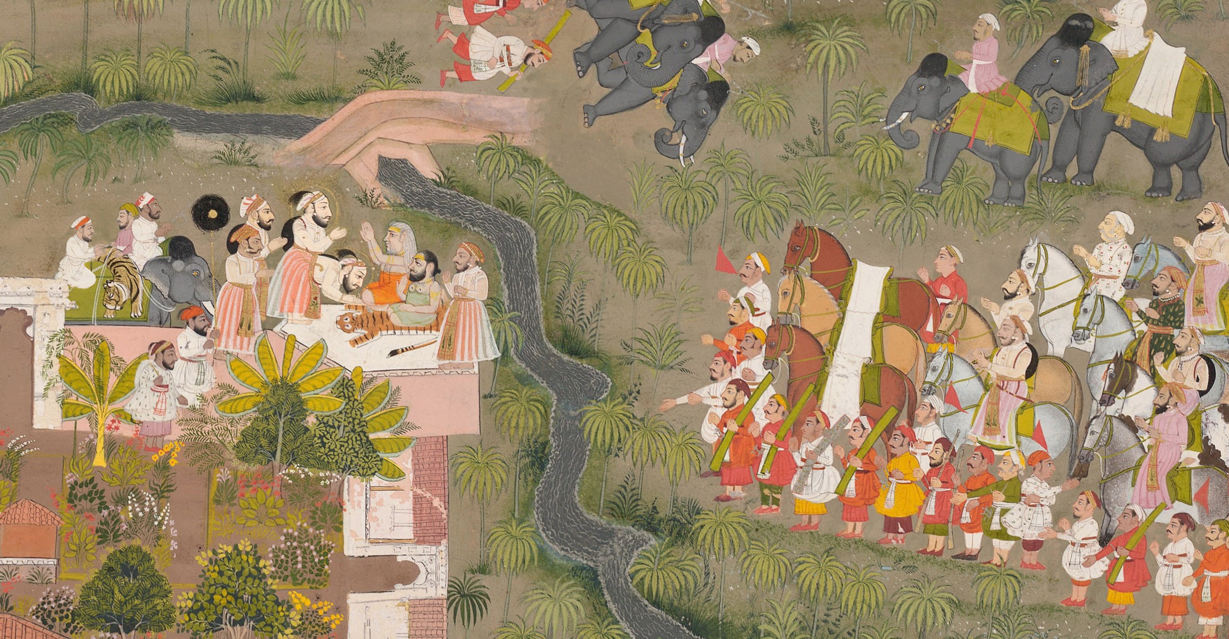 ![]() | Maharana Sangram II visiting Gosain Nilakanthaji after a tiger hunt (c. 1725) (detail) National Gallery of Victoria Maharana Sangram II Visiting Gosain Nilakanthaji (C. 1725)Details Indian (detail) ![]() |