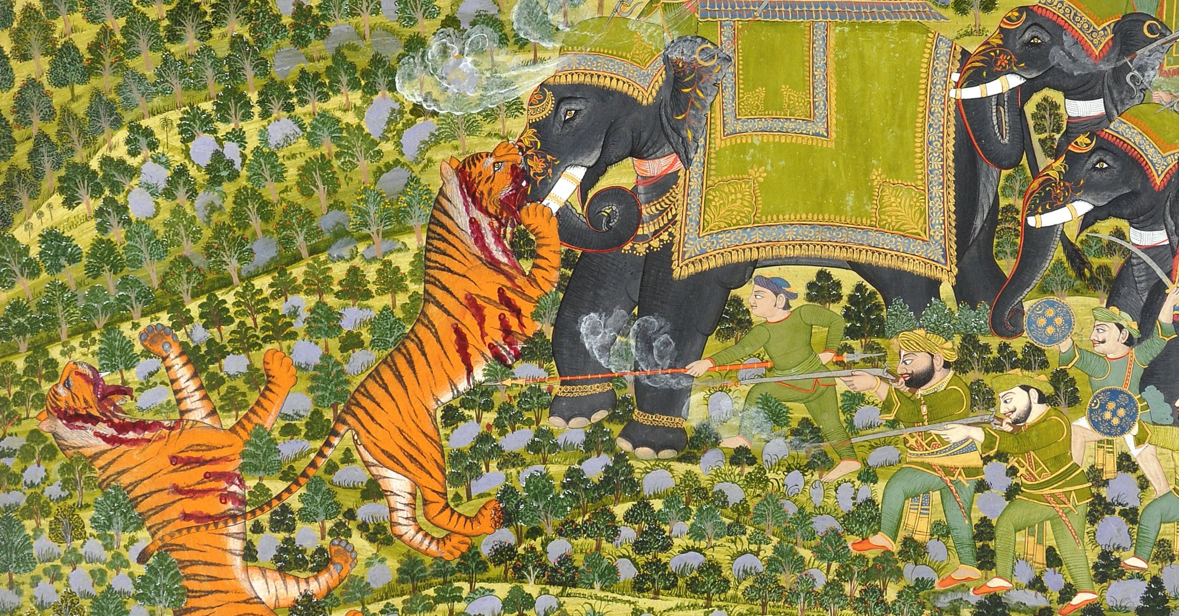 ![]() | National Museum, Delhi Raghuraj Singh Hunting Tigers Datia, (1800 AD - 1855 AD)Details Unknown (detail) ![]() |