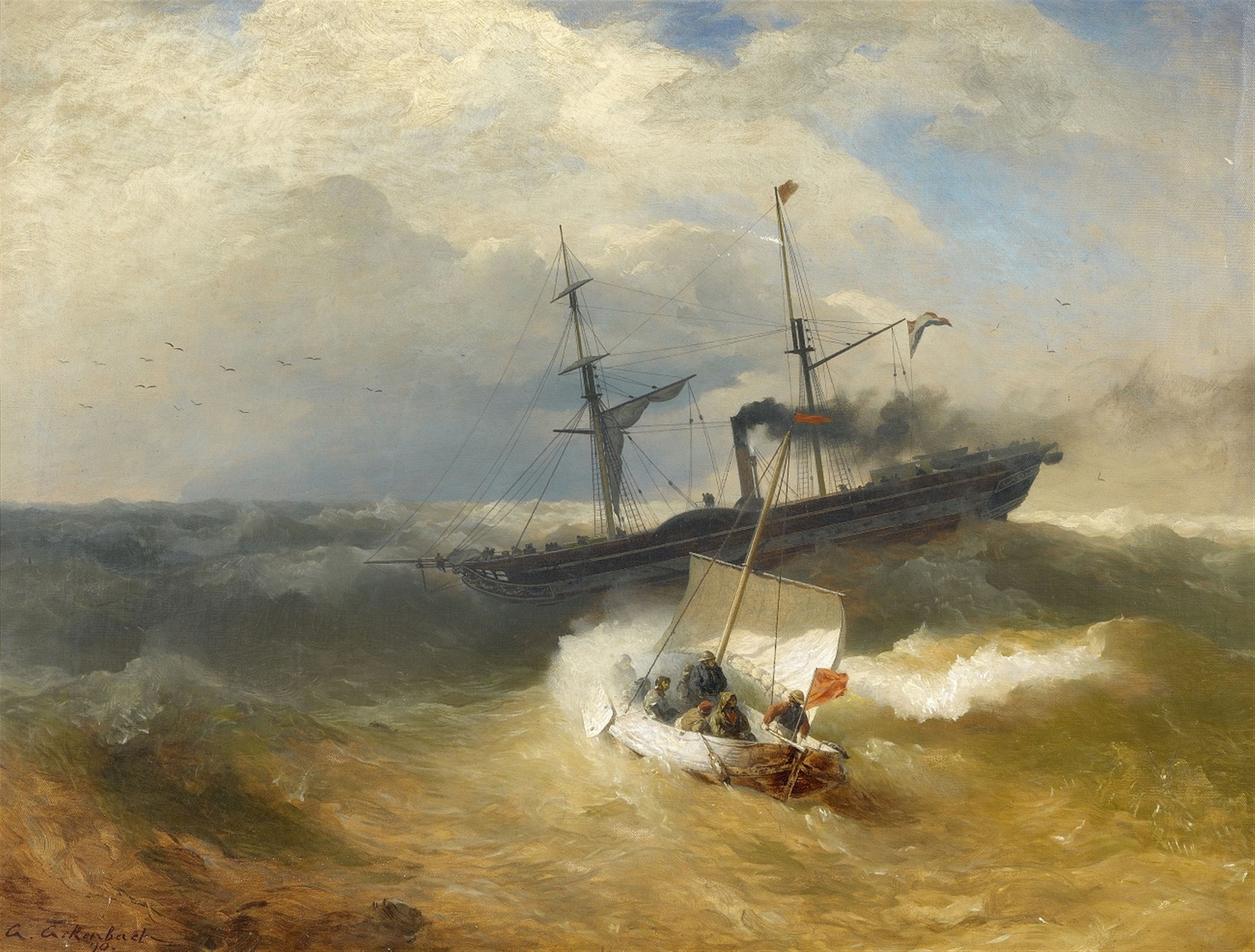 ![]() | Andreas ACHENBACH (1815-1910) - retour au port par tempete Andreas_Achenbach_-_Ein_Schlepper_verlasst_den_Hafen_von_Ostende_bei_Flut ![]() |